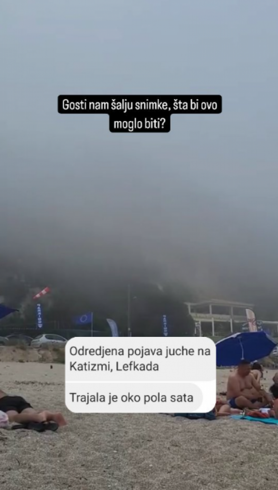 Pola plaže se brzinski pokupilo i otišlo sa plaže, a druga polovina je samo nastavila da uživa, kada je juče u mestu Katizimi na Lefkadi nebo samo posivelo a nešto poput magle se spustilo među kupače.