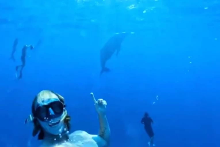 Na snimku vidimo kako Jaro roni sa prijateljima, a onda se iz mračnih dubina pojavljuje grbavi kit! Ljudi deluju sićušno pored morskog stvorenja, a gledaoci su oduševljeni scenom.