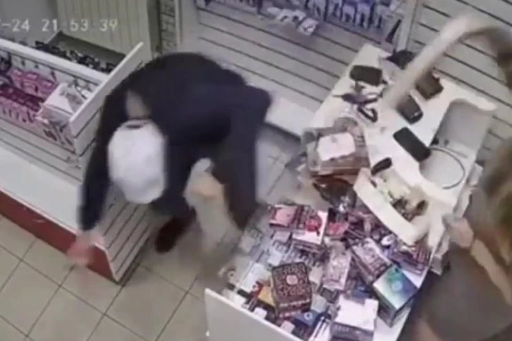 Snimci sigurnosnih kamera iz prodavnice za odrasle u gradu Novokuznjeck u Rusiji pokazuju kako prodavačica udara lopova dildom.