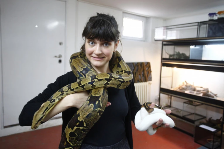 Serpentesa u svojoj kolekciji ima 10 kraljevskih udava, ali samo tri ili četiri su istovremeno na stolu. Zmije nikad ne tera na rad.