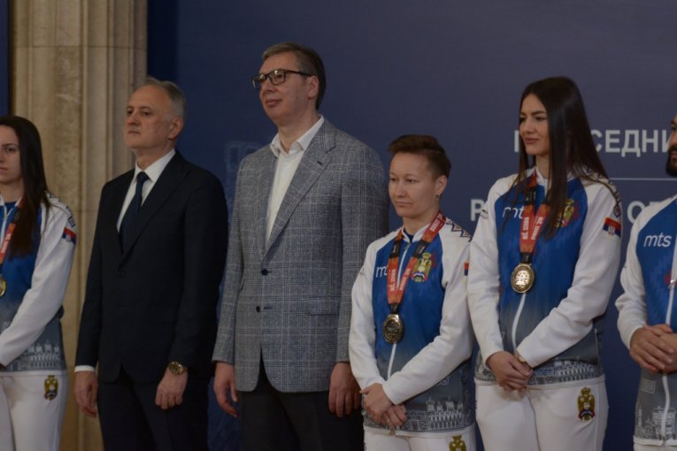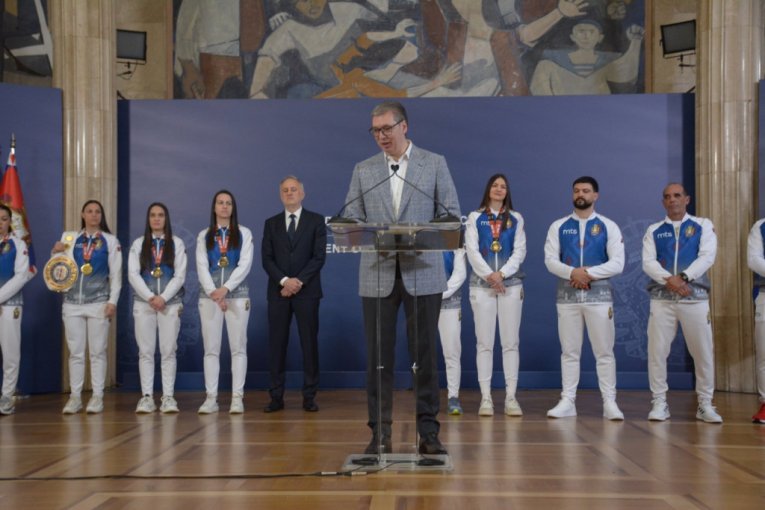 - Hvala vam na svemu što se učinile u Nišu, nas ponosnim, a naciju srećnom. Hvala za hrabrost. Ono što smo mogli da gledamo bilo je čudesno i u mečevima koje ste dobijale i gubile. Neverovatna posvećenost, hrabrosrt. Ginule ste za našu zastavu - ističe Vučić i dodaje: