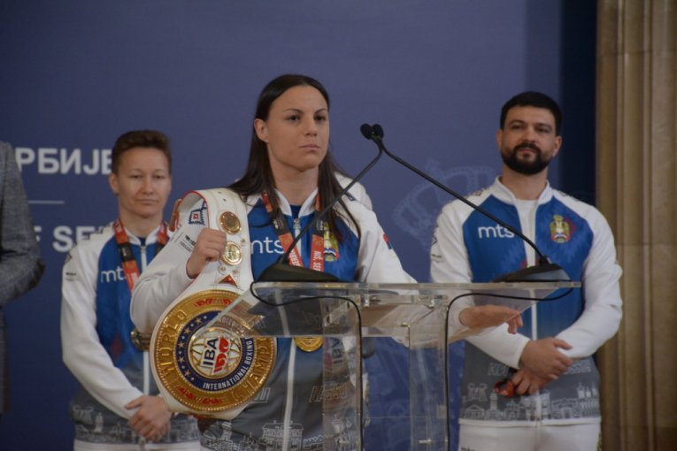 - Ispisale ste istoriju sprskog boksa. Hvala što nas učinile posebnim. Hvala što ste pokazale kako se bori u ringu, ali u životu. U četvrtak država isplaćuje novac - 30.000 evra za zlato i pet puta 20.000 za bronzu. Nama ostaje da ulažemo u boks. Hvala vam svima. Želim vam mnogo uspeha ubudćnosti. Čestitam, živela Srbija.