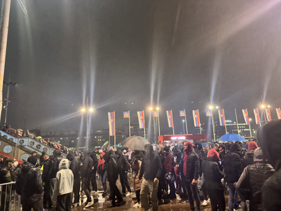Iako u Beogradu ceo dan pada kiša, a neke ulice su blokirane protestima, delije to nije sprečilo da dođu do naše najveće hale. Navijači su strpljivo čekali da uđu u halu, a to što su pokisnuli njima nije problem za voljeni klub.