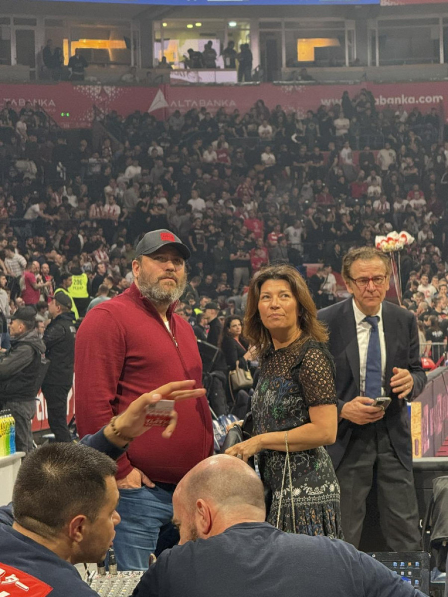 Tribine Beogradske arene su ispunjene, a među prisutnima su i poznata srpska glumica Milena Vasić, kao i njen suprug pozorišni i filmski režiser Jug Radivojević koji je redovan na utakmicama svog omiljenog tima, a često ide i na gostovanja kao što je bio slučaj sa utakmicom protiv Bajerna iz Minhena.