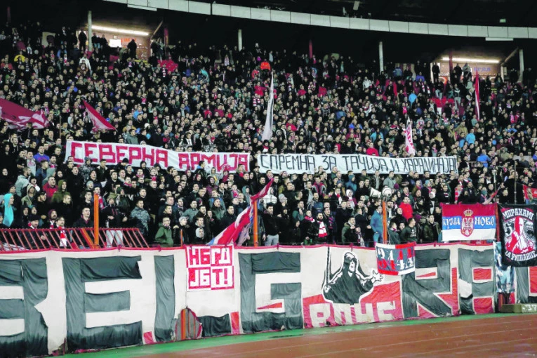 Foto: StarsportIpak, da su im nacionalni interesi na prvom mestu, najvatrenije pristalice crveno-belih dokazale su sredinom drugog poluvremena istakavši parolu na kojoj je pisalo "Severna armija spremna za Tačija i Haradinaja".