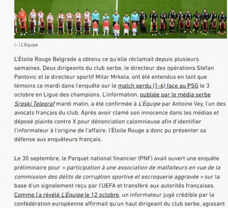 Francuski list naveo je da se pisanje našeg portala ispostavilo kao tačno te da je odmah potvrđeno od strane advokata koji brani Zvezdu u ovom slučaju, Antoana Vea.