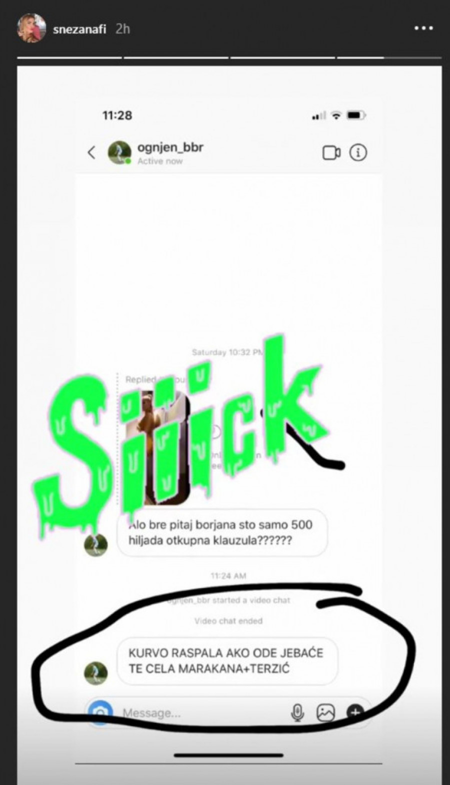 Pregovori odličnog golmana i crveno-belih oko produžetka saradnje traju već neko vreme, ali konačnog dogovora i dalje nema. Pojedini navijači očigledno smatraju da je za to kriva Snežana. Zato joj prete, a ona se tim povodom oglasila preko "Instagrama" i pozvala državu, policiju i medije na reakciju kako bi se zaustavilo to ludilo.