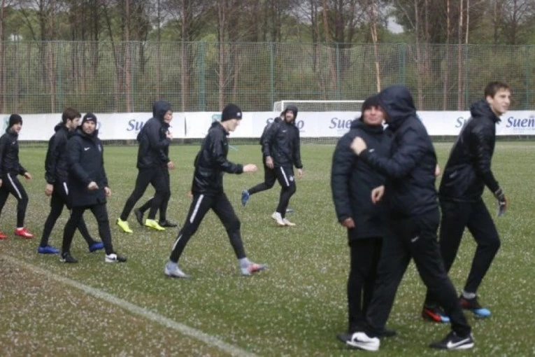 Kako je trening odmicao kiša je jenjavala, ali je jasno da rad u ovakvim uslovima ne odgovara ni stručnom štabu, ni fudbalerima.