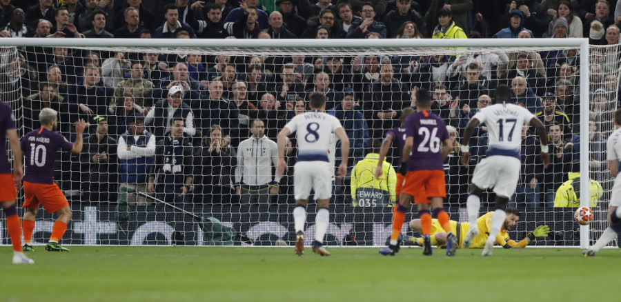 13. minut: Loris je odbranio penal Agueru. Sterling je ulazio u kazneni prostor Totenhema, uklizala su dva igrača domaće ekipe, lopta je pogodila jednog od njih u ruku, a Krujpers je posle odgledanog snimka odlučio da je to penal uz žuti karton Roseu.