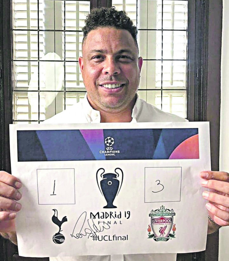 Svojevremeno najbolji fudbaler na svetu Luis Nazario de Lima Ronaldo (42) prognozirao je da će Liverpul slaviti u finalu LŠ protiv Totenhema rezultatom 3:1. Popularni Zuba deo je sveobuhvatne akcije UEFA u kojoj slavni igrači tipuju ishod meča za "ušati pehar".