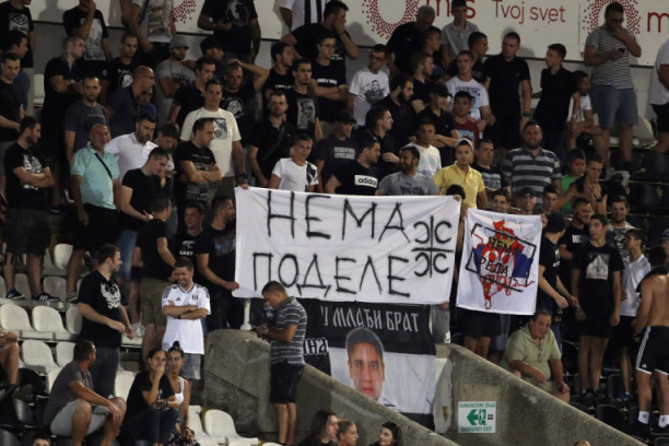 Jedna od grupa najvatrenijih pristalica razvila je i transparente "Marš iz Partizana", "Partizan nikada gori", "Protiv urušavanja Partizana...".
