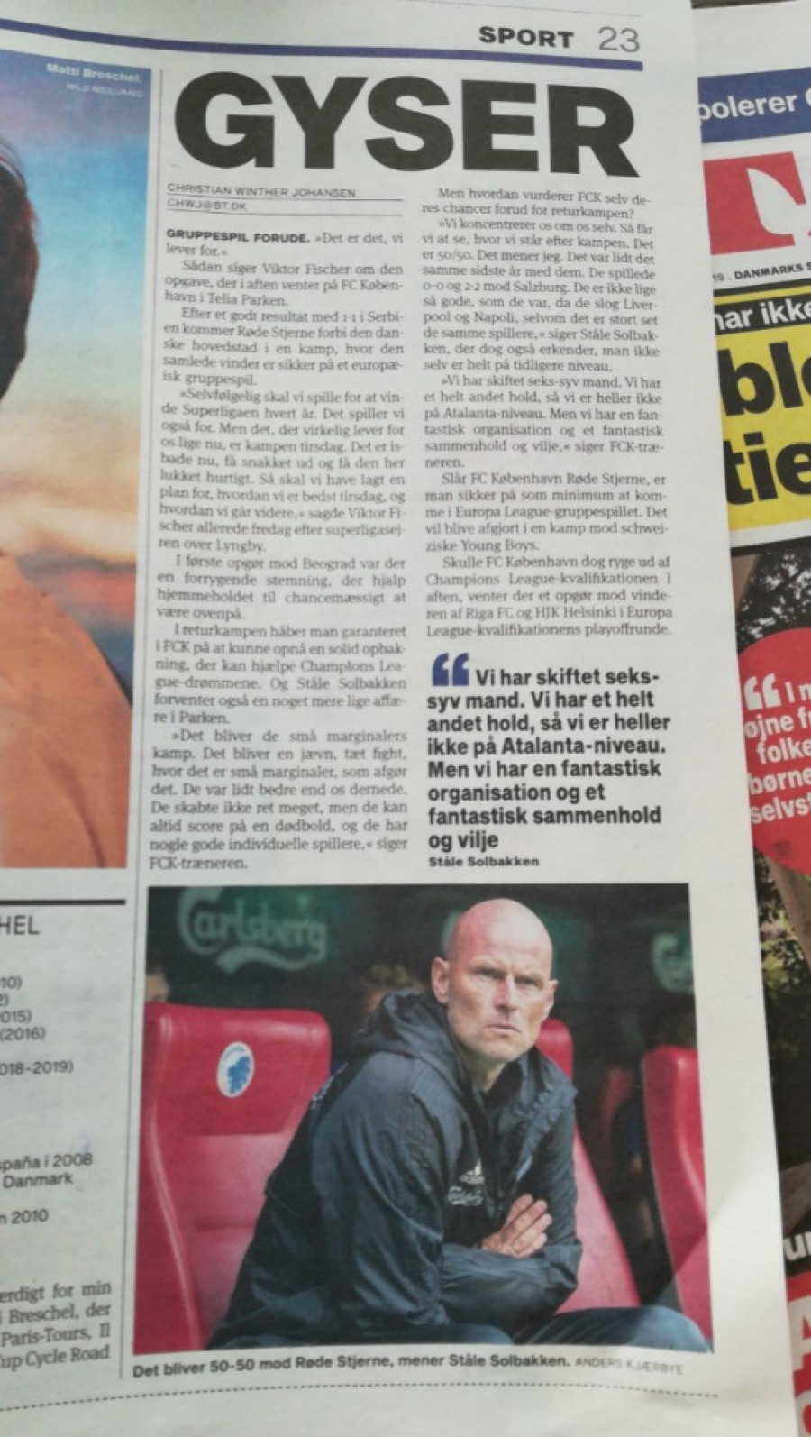 Vladan Milojević i Stale Solbaken, treneri Crvene zvezde i Kopenhagena su naveli kako je revanš utakmica njihovih timova trenutno najvažnija u dosadašnjem delu sezone, ali ni te reči nisu bile dovoljne kako bi se danski mediji malo više angažovali!