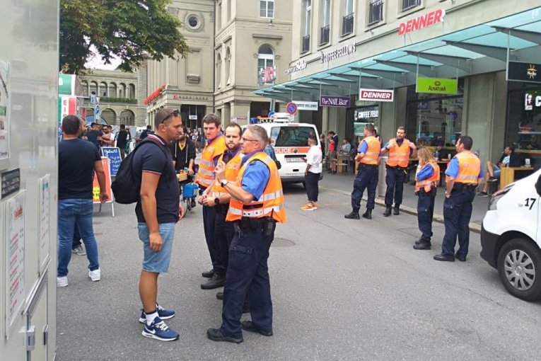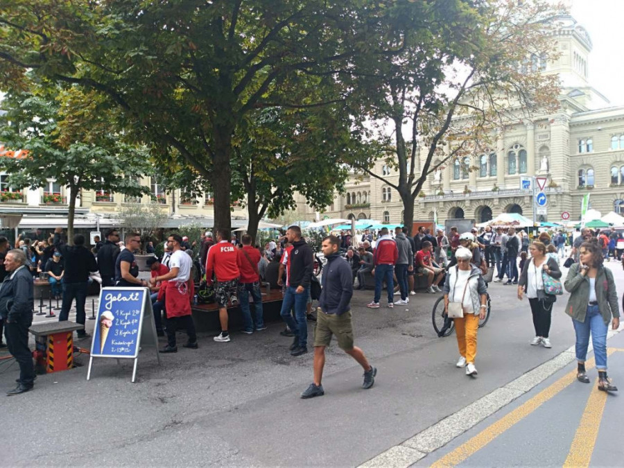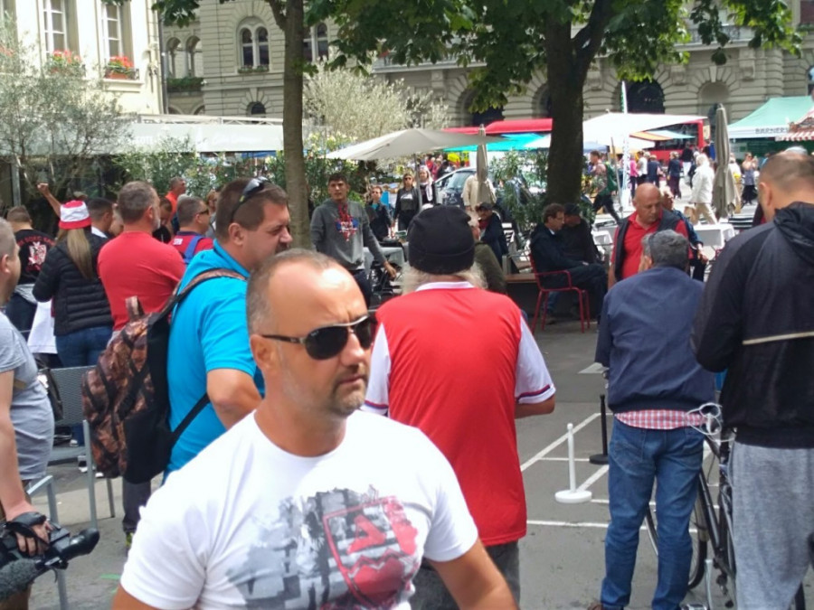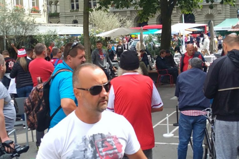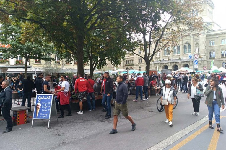 "Delije" su već počele da se okupljaju na centralnom trgu u Bernu.