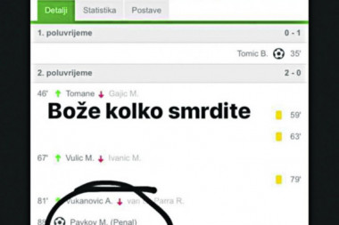Foto: StarsportSve to što se dešavalo na Marakani smučilo se generalnom direktoru Partizana Milošu Vazuri. On je na Vocapu okačio sliku iz aplikacije flešskor na kojoj stoji da je Milan Pavkov iz dva penala doneo trijumf Zvezdi, uz komentar: "Bože, kolko smrdite", koji se evidentno odnosio na večitog rivala. Klub iz Humske prvi je pokrenuo tezu da je srpskom fudbalu neophodno uvođenje VAR tehnologije i to posle fantomskog gola Ričmonda Boaćija na 158. večitom derbiju (1:1).