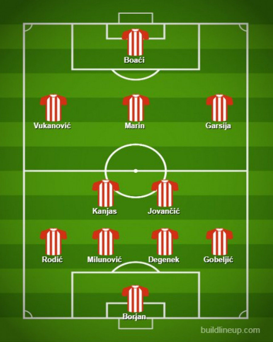 Ipak je Milojević odlučio da krene meč sa napadačem iz Gane u sastavu, tako da će na krilnu poziciju u veznom redu Aleksa Vukanović, strelac pobedonosnog gola u prethodnom derbiu koji je Crvena zvezda dobila.