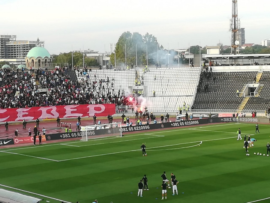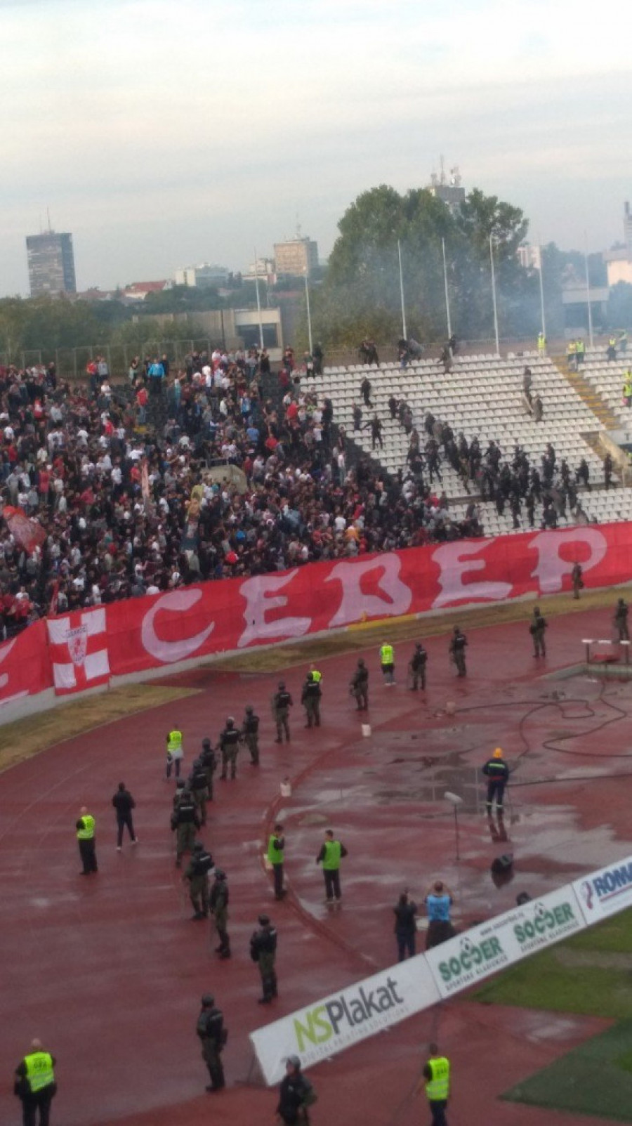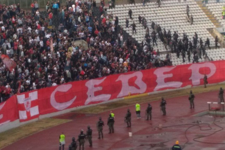 Navijači Partizana su se povukli nazad na svoj deo tribina, kao i navijači Crvene zvezde.