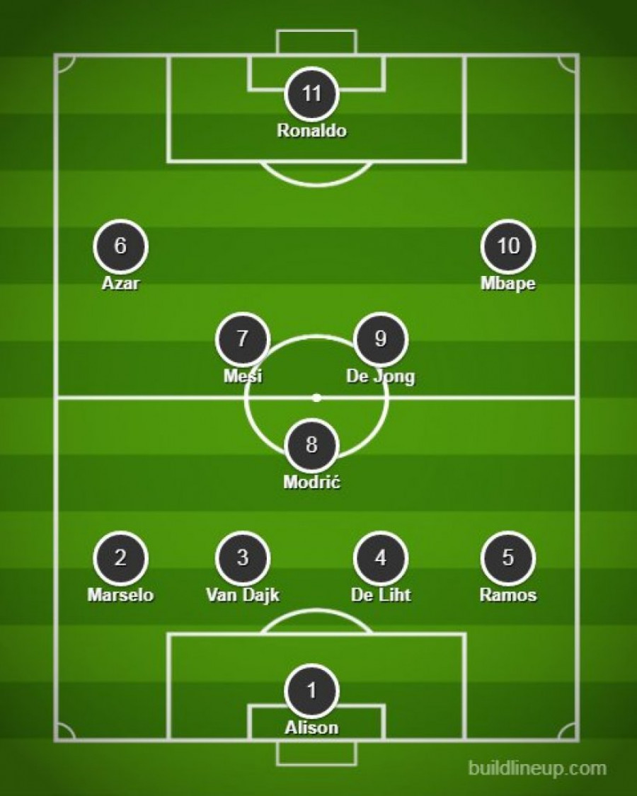 Najbolji golman sveta je Alison Beker, čuvar mreže Liverpula, odbranu čine Matajs de Liht, bivši igrač Ajaksa, a sada član Juventusa, Serhio Ramos iz Real Madrida, njegov saigrač Marselo i centralni defanzivac Liverpula Virdžil van Dajk.