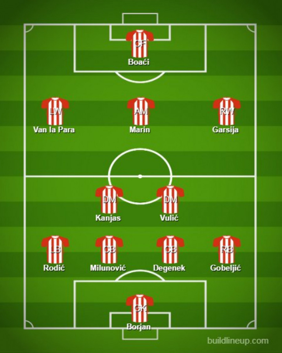 Što se tiče sastava Milan Borjan je siguran na golu, a Rodić se vraća na mesto levog beka. Marko Gobeljić je standardan na drugom boku, a Degenek i Milunović ostaju štoperski tandem.