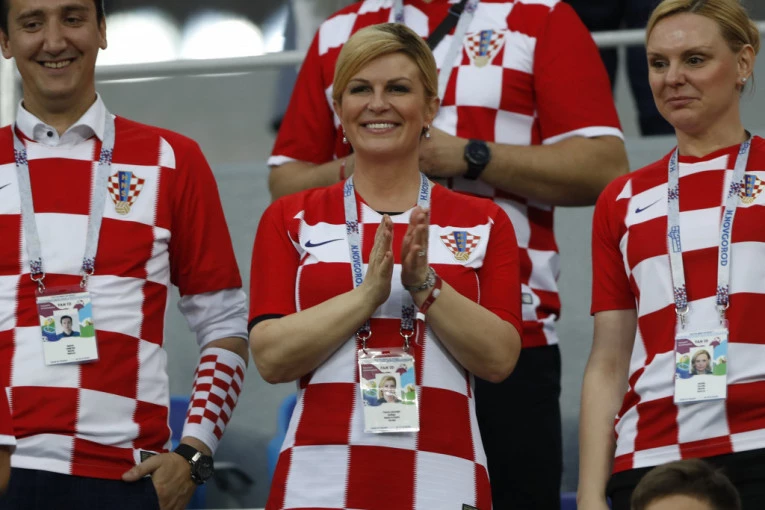 Nije mogla da ne potkači Srbe... Predsednica Hrvatske Kolina Grabar-Kitarović bodrila je "vatrene" u meču kvalifikacija za Evropsko prvenstvo protiv Slovačke uz jedan neprimeren gest.