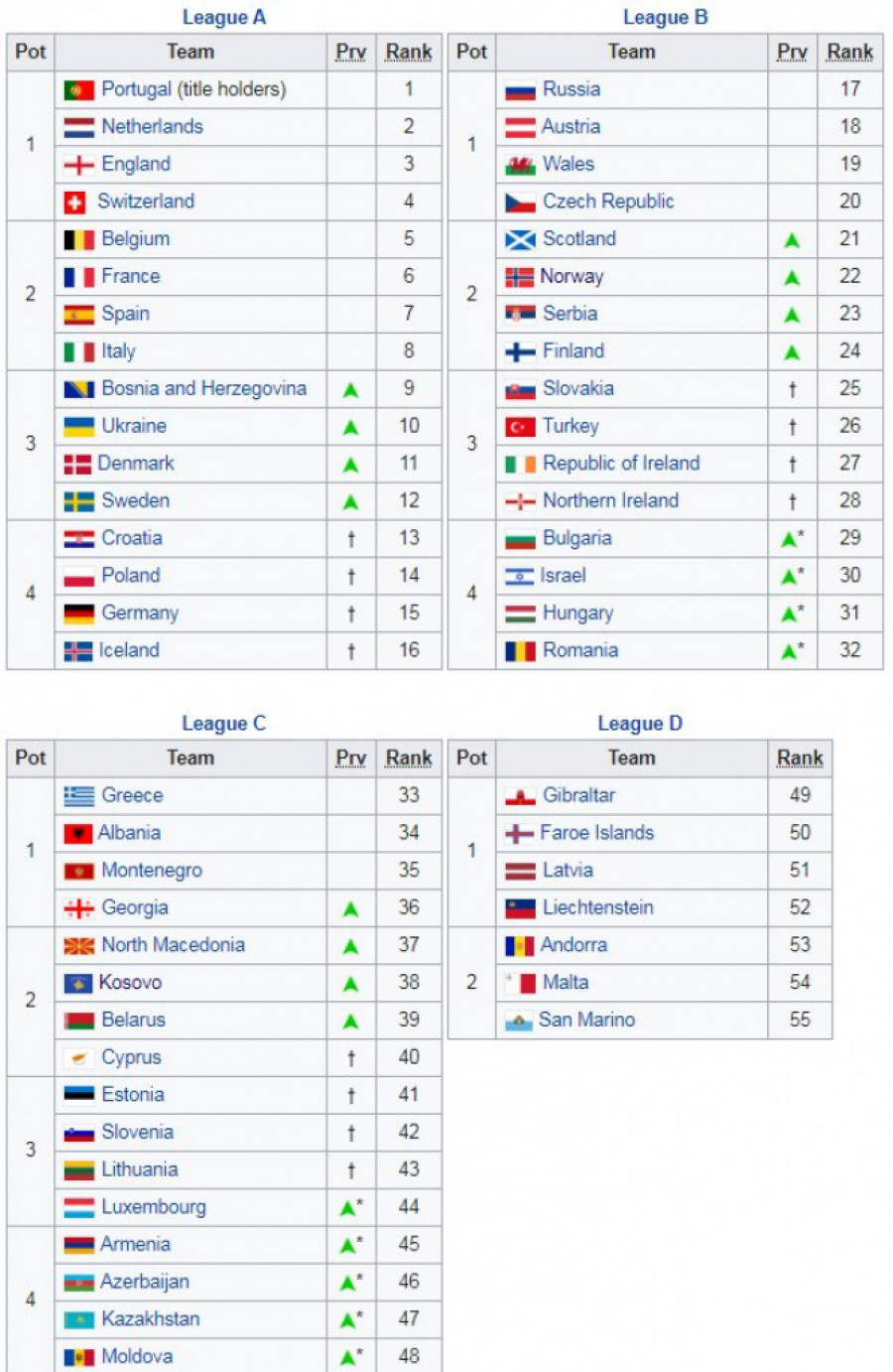 Foto: StarsportSrbija se plasirala u Ligu B, a UEFA je odlučila da će se tamo naš tim naći u drugom šeširu. Šeširi izgledaju ovako: