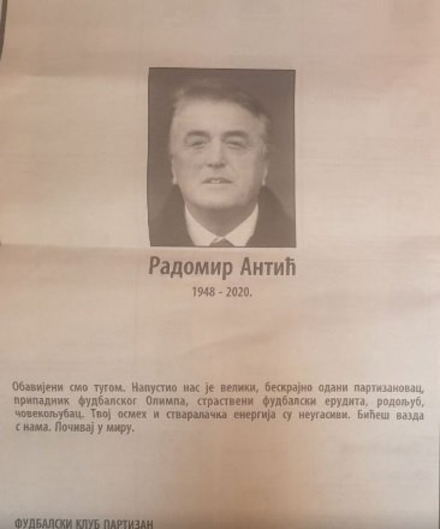 U Večernjim novostima su dve strane posvećene samo bivšem selektoru. FK Partizan je dao najveću čitulju, preko čitave strane, koja je ujedno i najemotivnija, jer je slikovito opisano koliko je veliki bio Radomir Antić.