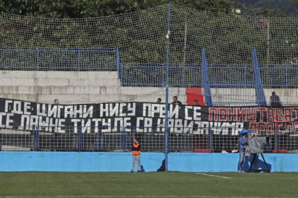 Sada druga priča, sudija Jovanović je prekinuo utakmicu jer navijači nisu želeli da uklone transparent, a uslov je bio da uđu svi navijači crno-belih na tribinu.