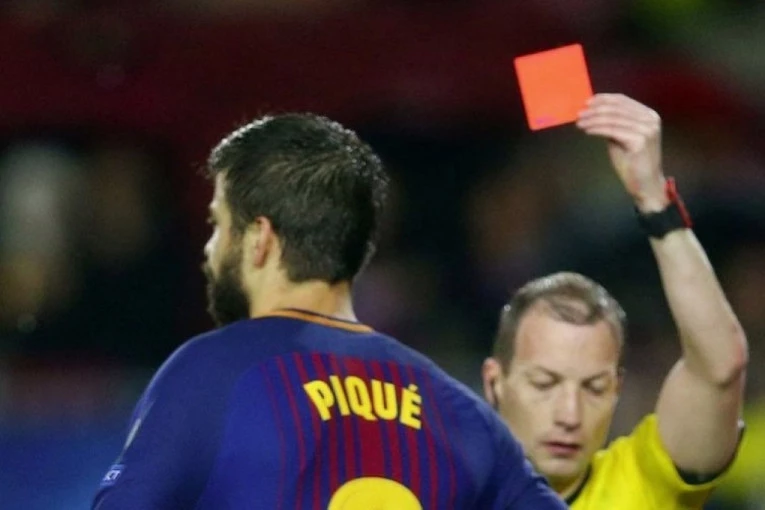 Fudbaler Barselone Đerar Pike zasluženo je isključen u 42. minutu utakmice 3. kola Lige šampiona protiv Olimpijakosa.