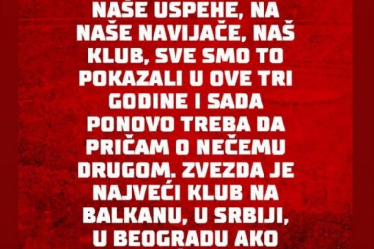 On je podsetio da je Zvezda tri godine u nizu šampion države, a da je mnofo muke iz tog uspeha.
