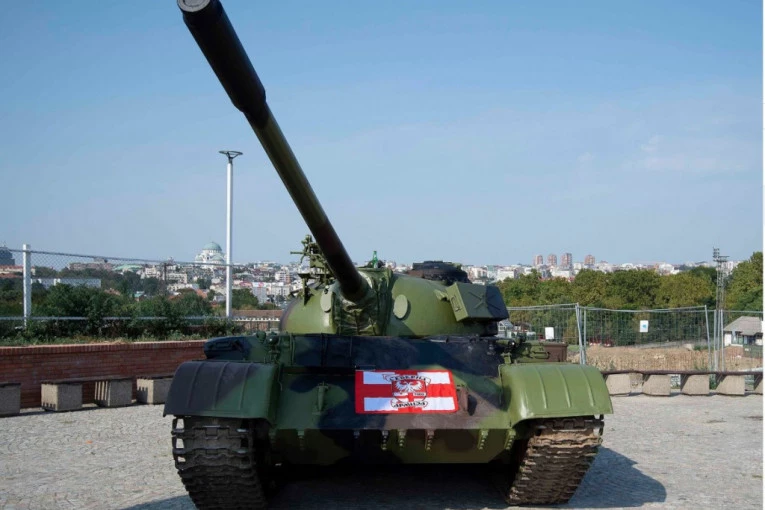 Zvezdin tenk ispred severne tribine stadiona "Rajko Mitić"