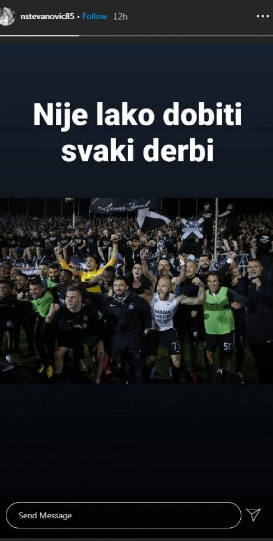 Odgovor iz Humske je stigao od golmana Nemanje Stevanovića. Čuvar mreže Partizana je uz sliku proslave pobede u poslednjem derbiju napisao: