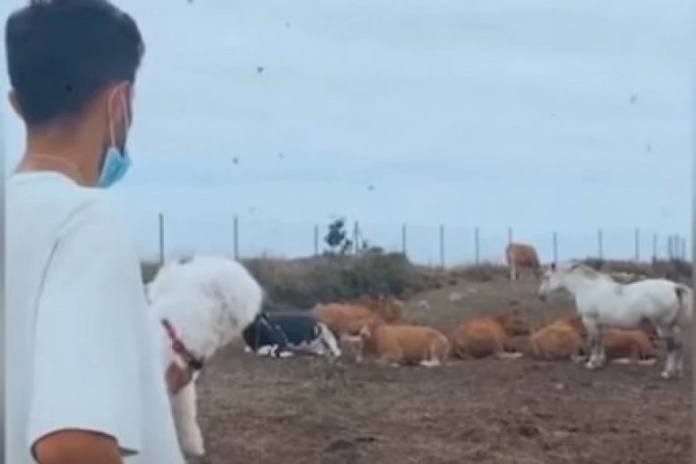 Naime, on je na selu snimljen kako razgovara sa kravama dok u ruci drži svog psa maltezera.