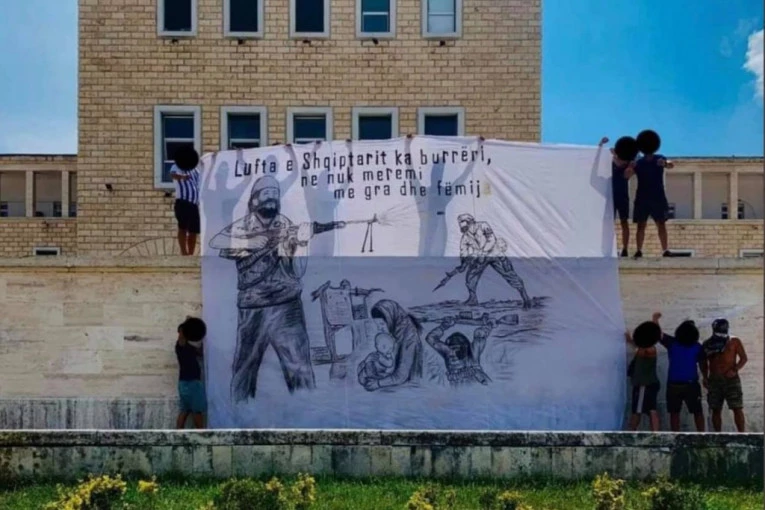 - Albanski rat je pitanje muškosti, mi se ne bavimo ženama i decom - a prikazan je srpski vojnik kako ubija ženu s detetom s leđa.
