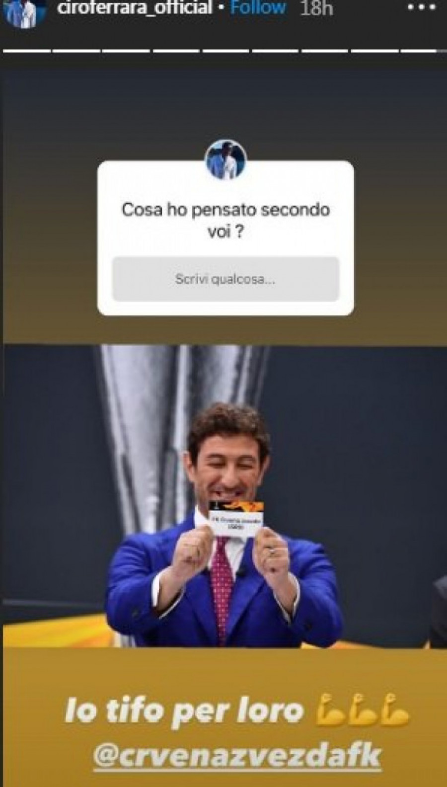 Ferara se oglasio na svom Instagram profilu i poručio da će u Ligi Evrope navijati za Zvezdu.
