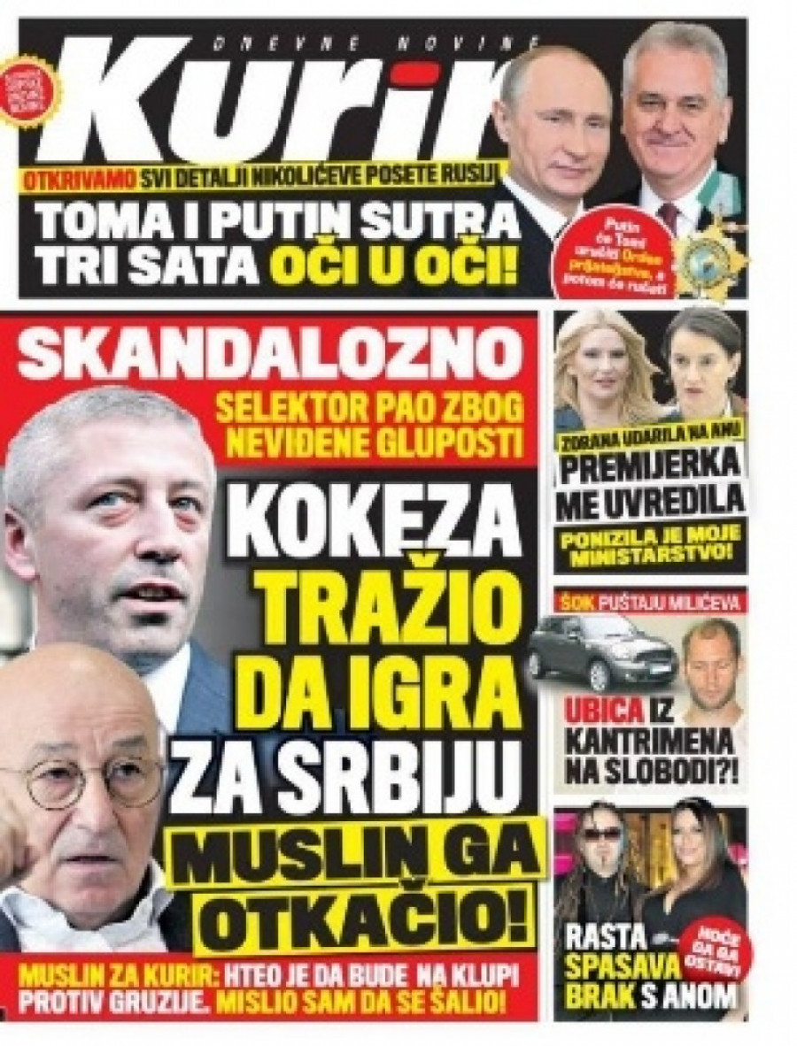 Foto: ST/ D. KADIĆReketaški Kurir na naslovnoj strani izdanja u petak, 3. novembra donosi neverovatnu priču da je Kokeza od Muslina tražio da bude u timu protiv Gruzije?!