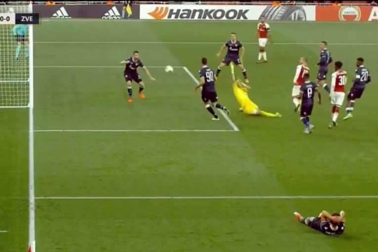 Fudbaleri Crvene zvezde napravili su senzaciju u Londonu, gde su odigrali nerešeno 0:0 sa velikim Arsenalom. Heroj utakmice je Damjan Le Talek koji je u 64. minutu spasao čist pogodak Vilšira, ako se snimak pogleda iz drugog ugla, dobija se i komična situacija.