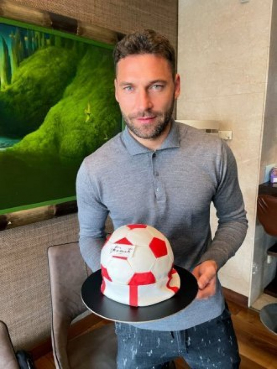 Foto: Tanjug/APIskusni defanzivac je dobio tortu u obliku lopte, a dominirale su crvena i bela boja, slučajno?
