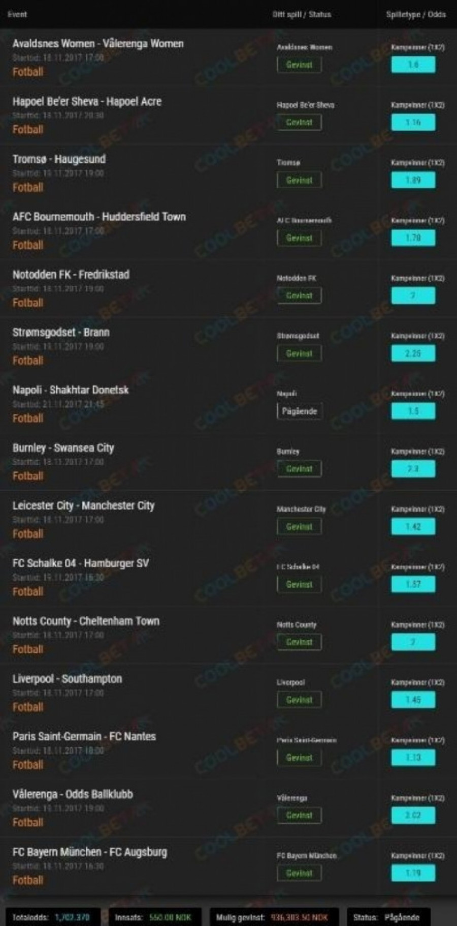 Foto: hegnar.noKako je otkrio norveški portal "Hegnar", anonimni kladilac je na tiket stavio 15 parova, uložio 550 evra i 14 je već pogodio!