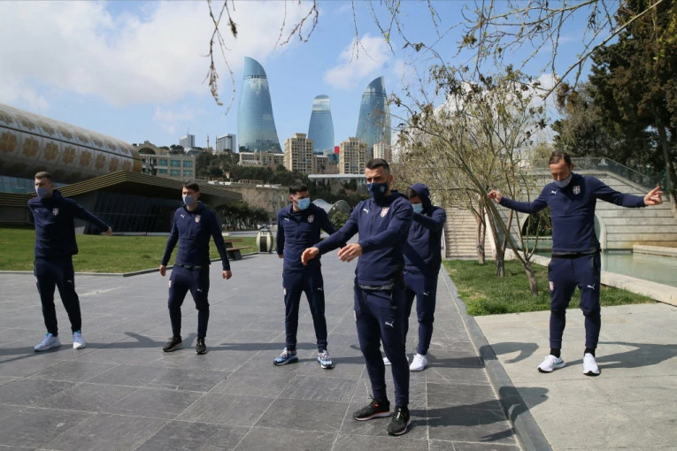 Lepo i sunčano vreme iskorišćeno je za lagano istezanje na platou ispred Muzeja ćilima, pod komandom kondicionog trenera Kacušita Kinošija. Svi u taboru našeg nacionalnog tima zrače optimizmom uoči novog izazova na putu ka Kataru 2022, duela sa Azerbejdžanom koji se igra u utorak od 18 sati po srpskom vremenu.
