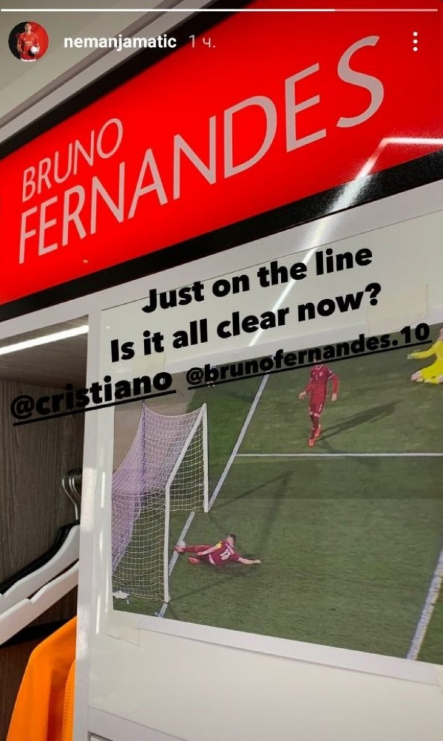 Naime, Matić je odštampao "sporan detalj" sa meča kada Stefan Mitrović izbacuje loptu sa gol-linije i zalepio u svlačionici "crvenih đavola".