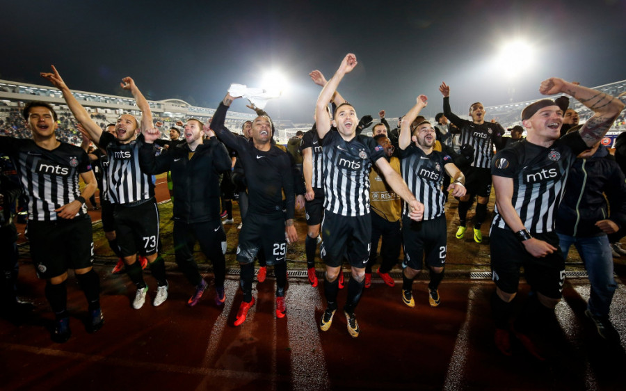 Fudbaleri Partizana su posle pobede nad Jang bojsom proslavili sa navijačima plasman u 1/16 finala Lige Evropa.