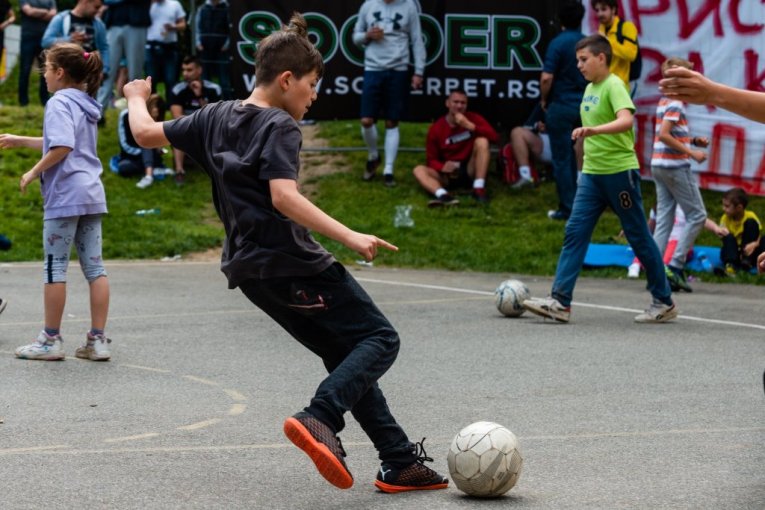 Foto: Todor MilivojevićMaj je doba godine kada proleće već uzima zamaha i kreću sportska dešavanja napolju, mada često i kiše umeju da iznenade. Nedelja 16. maj na sreću nije takva bila, već je vedro nebo natkrivalo krov Beograda, uzvišenje iznad Novog Beograda i teren Kockice na kome je odmerilo snage čak 20 ekipa u malom fudbalu.