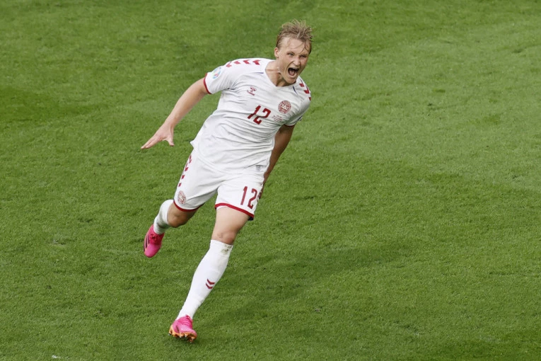 Foto: Tanjug/APJunak meča je Kasper Dolberg sa dva pogotka, jedan efektan van kaznenog prostora u 27. minutu, drugi je bio iskorišćen poklon defanzive Velšana u 47. minutu, na startu drugog poluvremena.