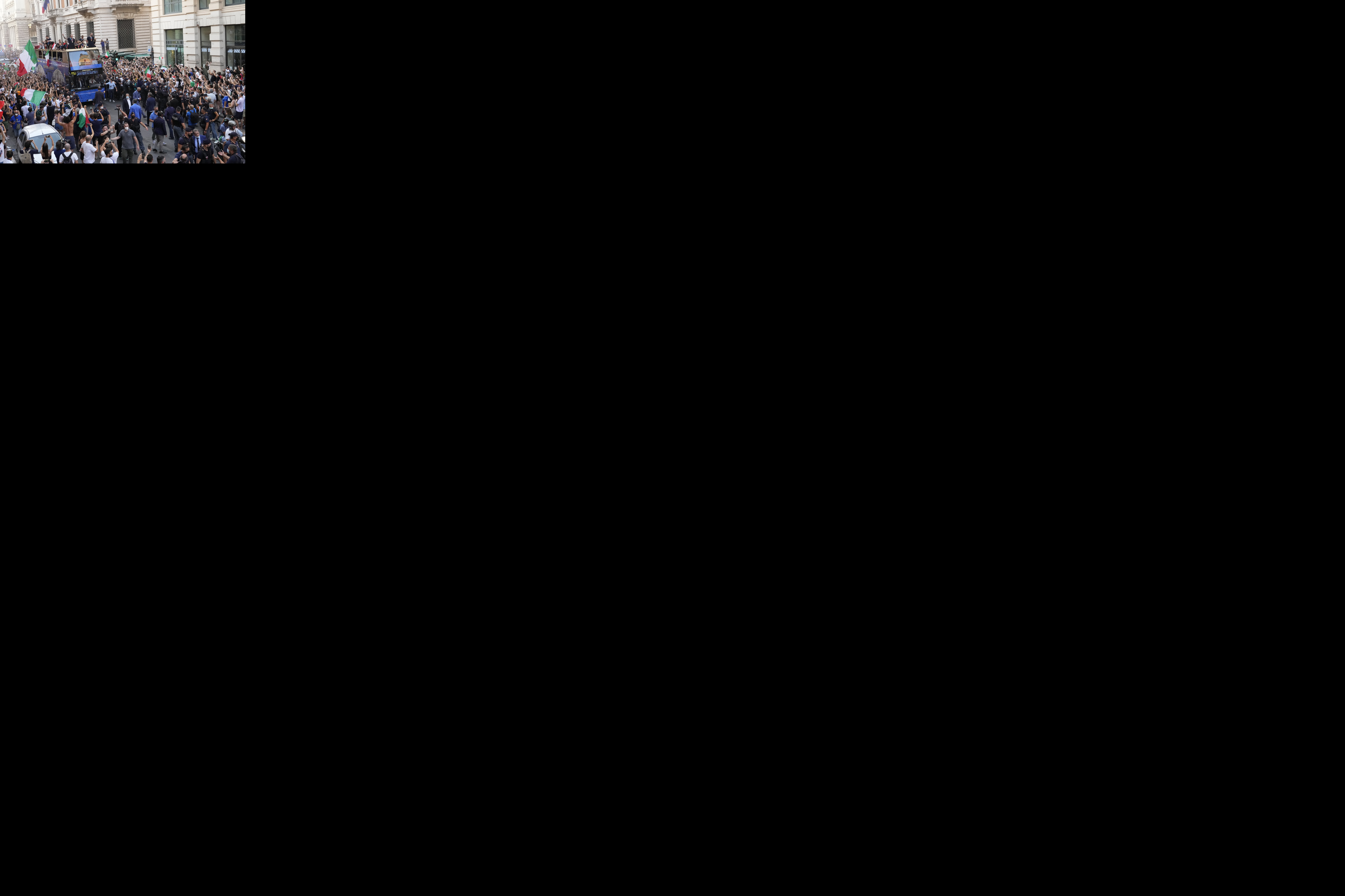 Foto: Tanjug/AP"Plavi" su, u autobusu bez krova, u masi navijača koji su okupirali rimske ulice, prošli dva kilometra puta od predsedničke palate do sedišta vlade.