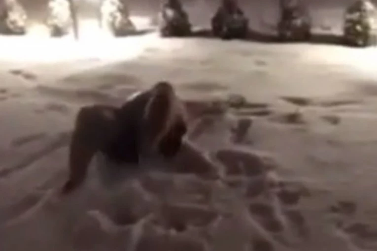 Foto: ST/N. PANČIĆČelnik crno-belih je gotovo go, samo u šortsu, izleteo na sneg na Zlatiboru i počeo da se valja. Uz repliku iz dobro poznatog crtaća "briga me za zimu, briga me za sneg, krzno mi je toplo, ja sam pravi medved".
