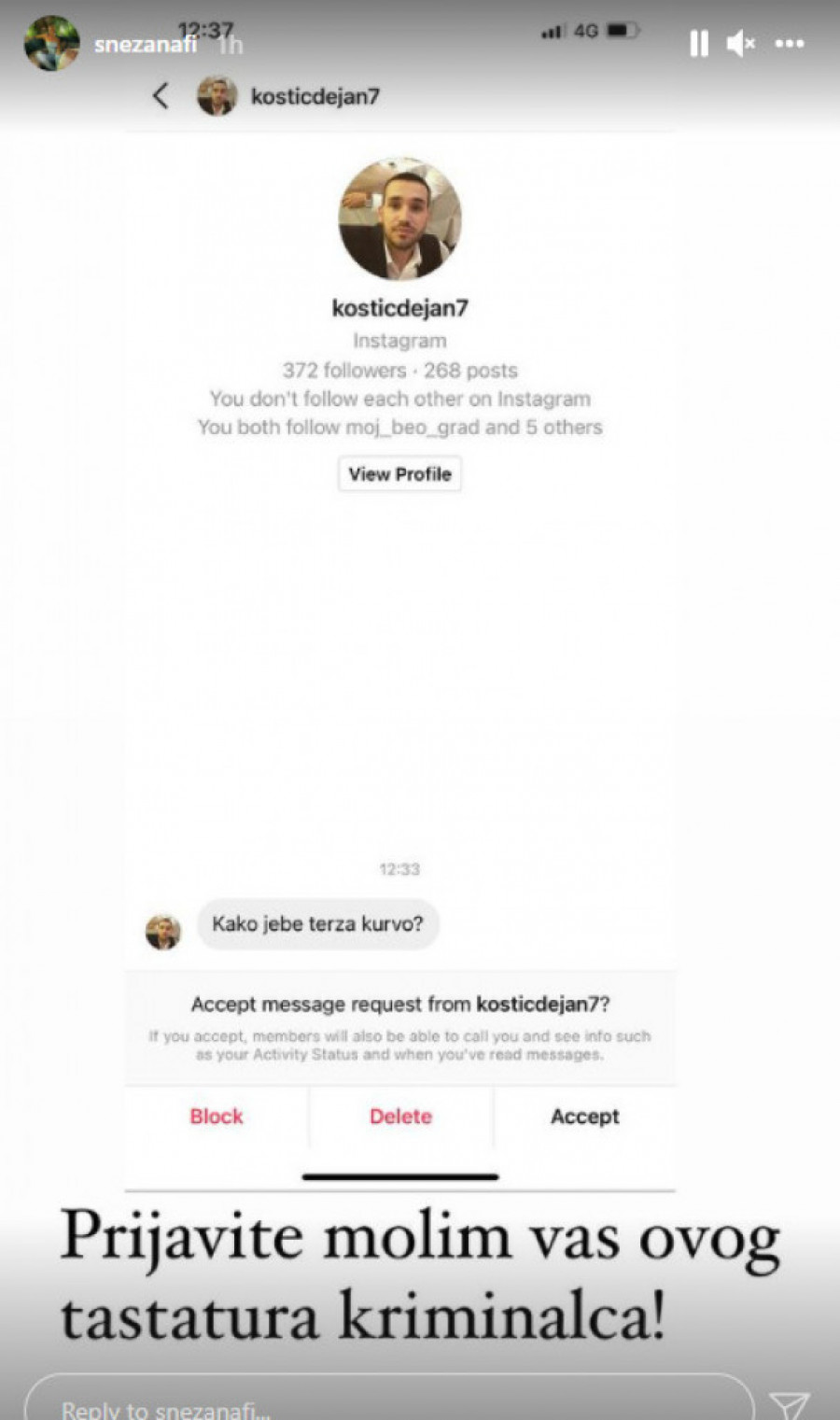 Kao što vidite, Snežana je morala da pozove svoju armiju pratilaca da reaguje, što je učinila u još jednom "Storiju".