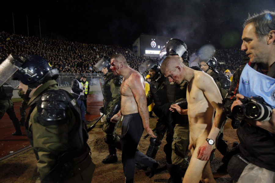 Međutim, nisu uspeli u tome. Prebijeni navijači su skinuti goli, a potom su uhapšeni.