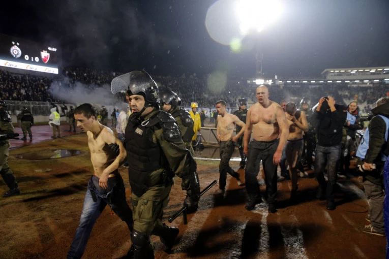 U masovnoj tuči na jugu, koja je počela sredinom prvog poluvremena i trajala je nekoliko minuta, korišćene su baklje sa obe zaraćene strane.