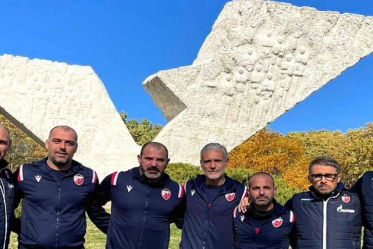 SVAKA ČAST: Dejan Stanković i stručni štab Crvene zvezde poklonili se senima stradalih u Šumaricama