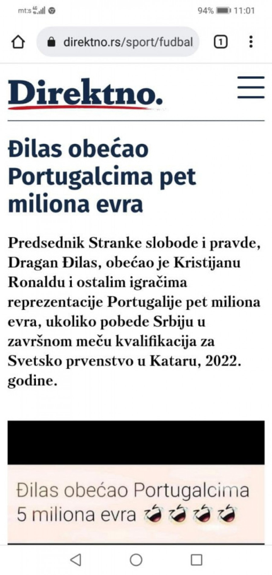 Portal koji podržava politiku Dragana Đilasa u pokušaju da bude duhovit napravio je danas satirični tekst kada je Srbija kretala u odlučujući boj za plasman na Svetsko prvenstvo u Kataru.