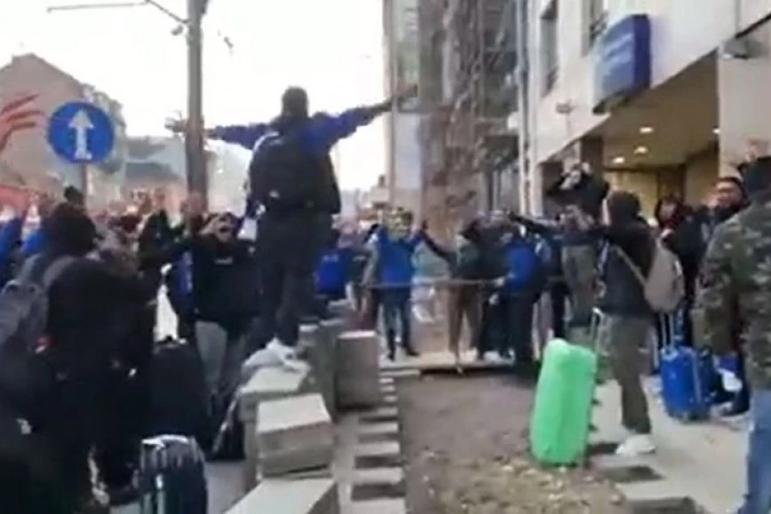 Navijačka grupa "Maxhtec" je već stigla u Beograd, dobro su raspoloženi i njihova pesma se već čuje na ulicama Beograda. Oni su se, naime, grupisali u Ruzveltovoj ulici, u blizini Vukovog spomenika, gde su uz bubnjeve pevali svom klubu.